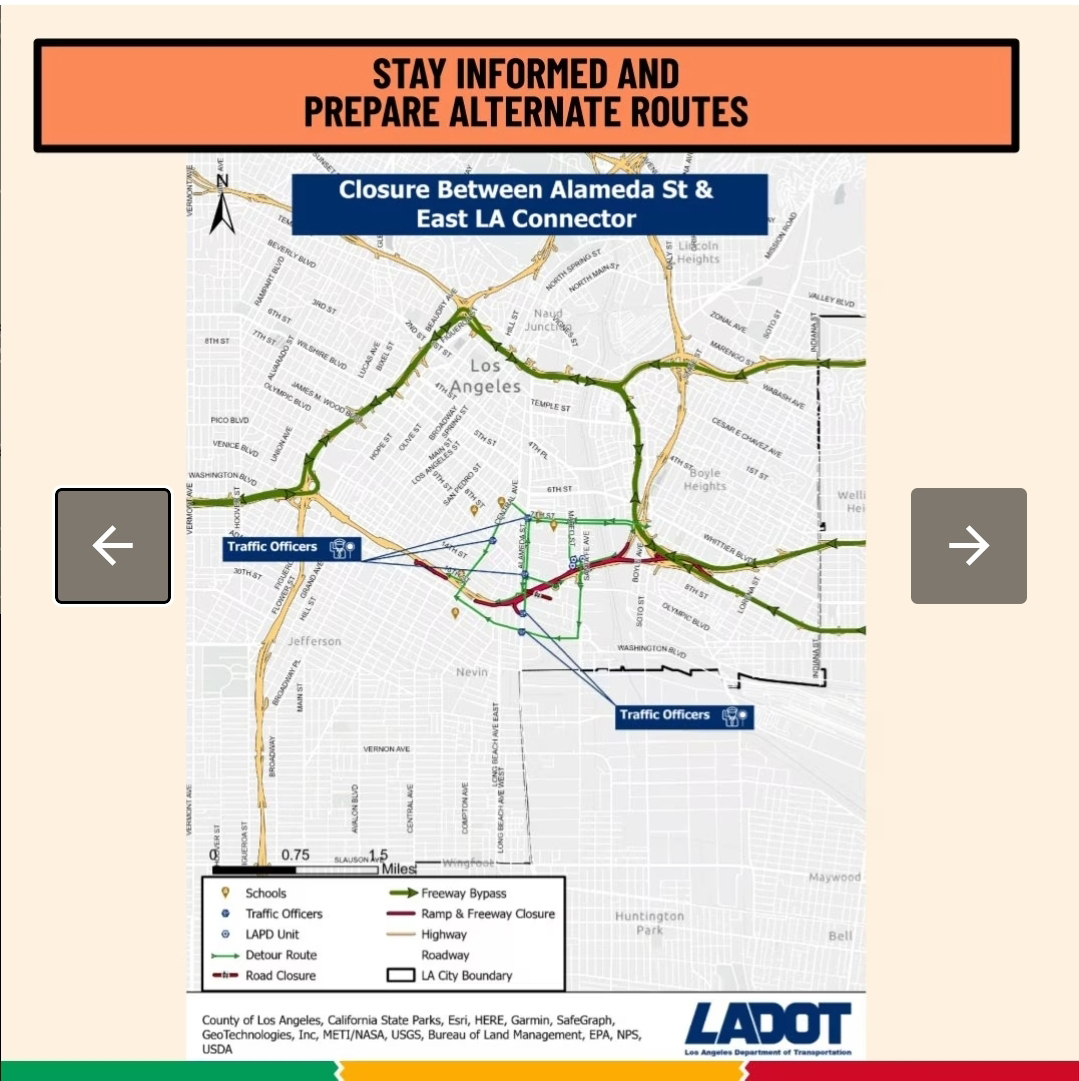 Caltrans에 따르면 LA 다운타운 또는 그 주변의 주요 스포츠 행사에 참석할 계획인 사람은 대체 경로를 찾거나 주요 지연에 대비할 계획을 세울 것을 요청했다.