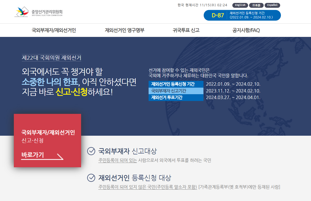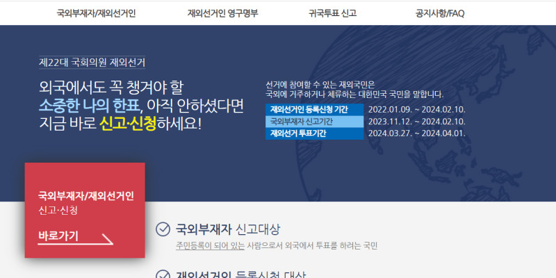[한인사회소식] 한국 재외선거 국외부재자 신고 등 유권자등록 시작