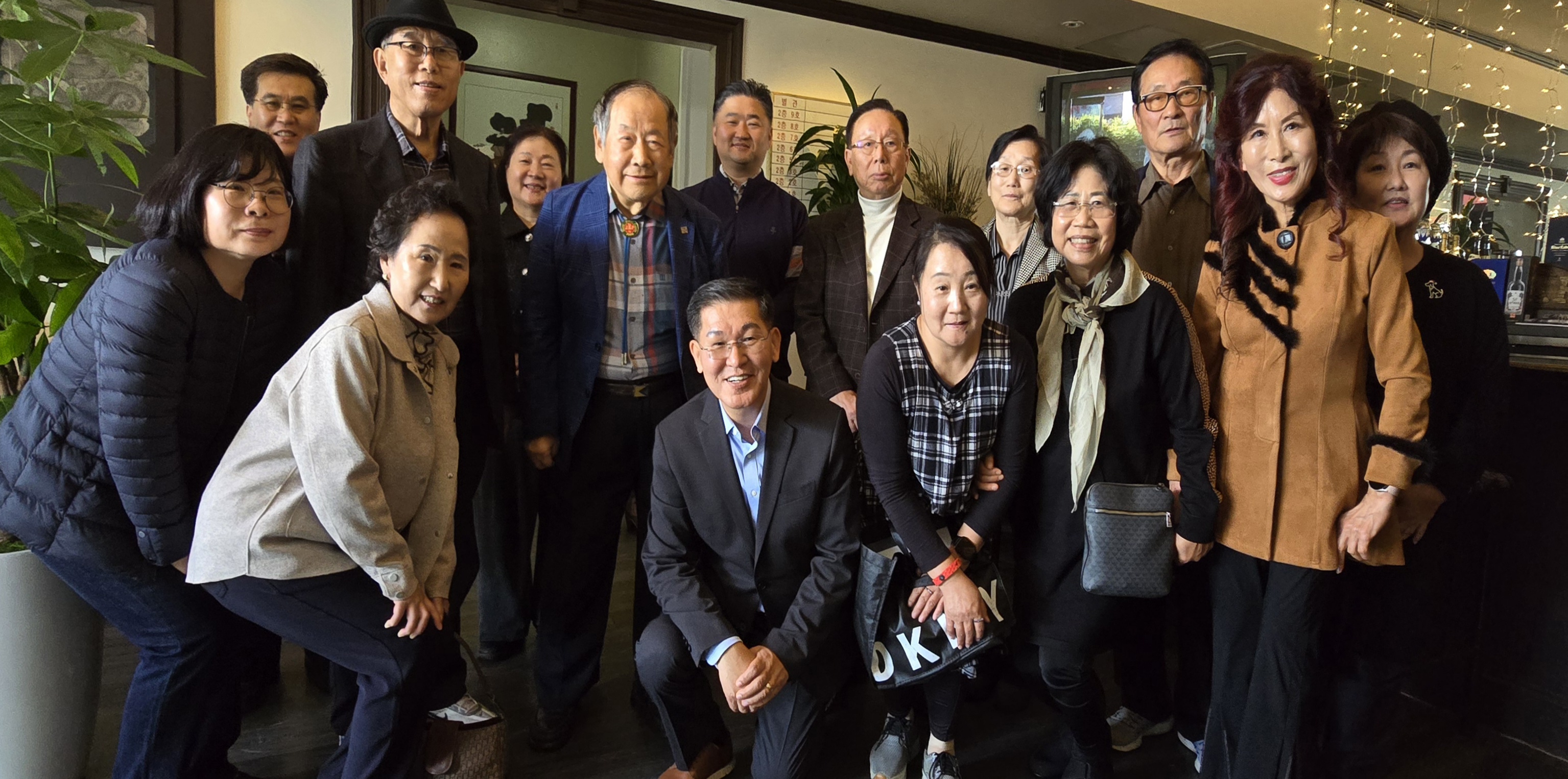 실로암미주후원회가 2025년 새임원진을 세우고 기념촬영을 하고 있다. 아래 가운데가 신임회장 용장용목사(LW커뮤니티교회 담임), 그 뒤에 홍춘만목사(실로암미주 후원회 이사장), 뒷줄 왼쪽 끝이 수석부회장 김신목사(주향교회 담임)등 임원 및 이사회원들과 함께.