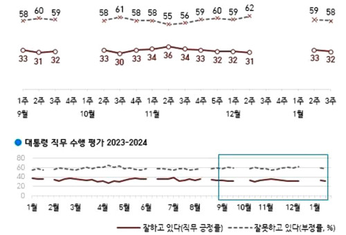 尹, 지지율 32%…국민의힘 36%·민주 33%·무당층 26%