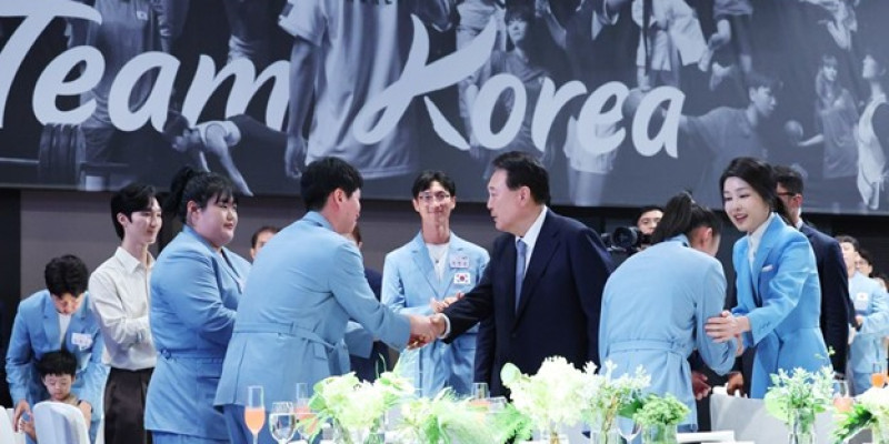 윤석열 대통령은 22일 2024 파리올림픽 선수단 전원을 초청해 만찬 행사를 열고 격려했다.