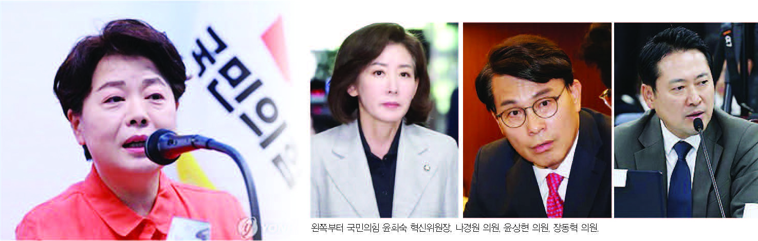 국민의힘 윤희숙 혁신위원장이 나경원·윤상현·장동혁 의원과 송언석 비상대책위원장 겸 원내대표를 1차 인적 쇄신 대상으로 지목했다.