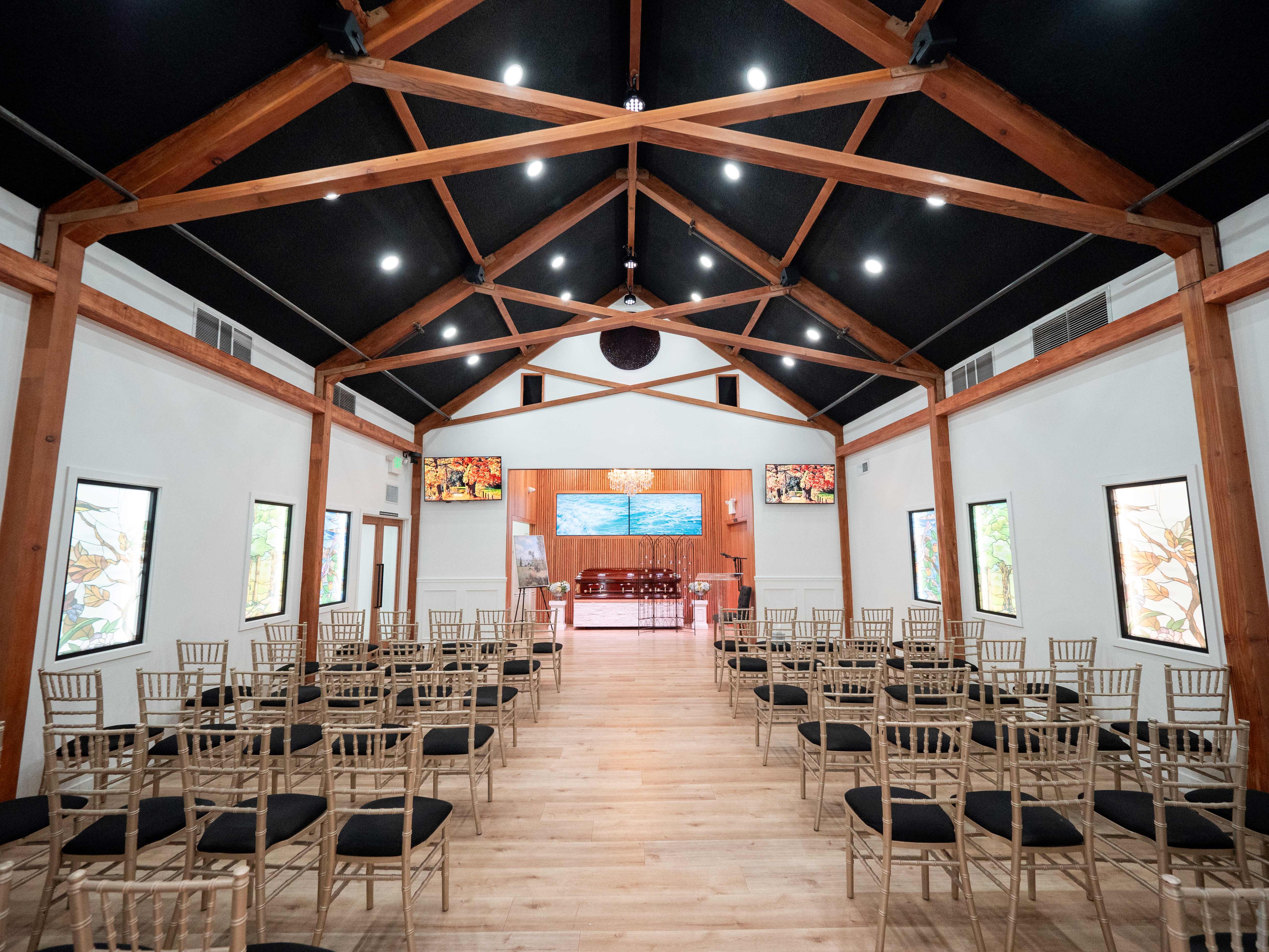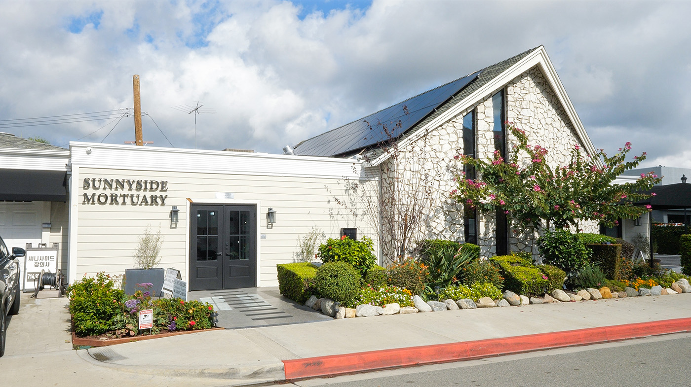써니사이드 장의사 가든그로브 점은 오렌지카운티 내 최대 규모로 아름다운 성전과 모자이크 창문이 조성되어 있어 조문객과 유족들에게 위로와 평안을 느끼게 한다.