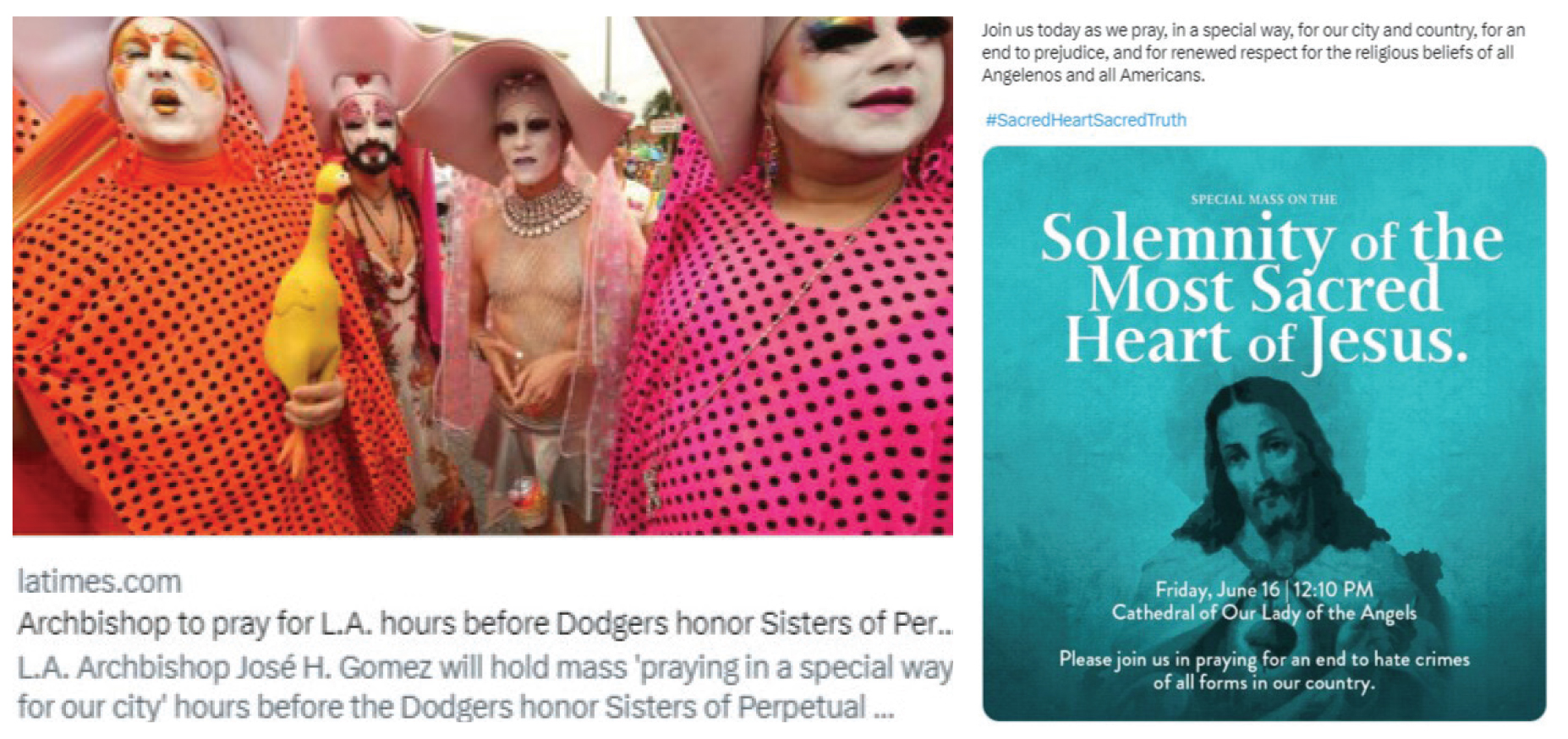 LA 대교구 측은 이날  미사와 예수 성심 대축일 기도회가 LA 다저스의 소수자 이벤트에 대항하는 차원이었다고 밝혔다.