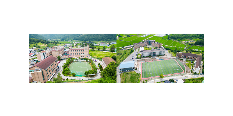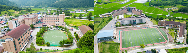 글로벌선진학교 음성캠퍼스(왼쪽)과 문경캠퍼스 전경(오른쪽)