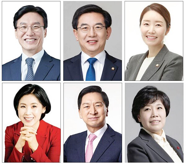 (윗줄 왼쪽부터) 김민석(서울 영등포을), 정일영(인천 연수을), 강선우(서울 강서갑), (아랫줄 왼쪽부터) 김미애(부산 해운대을), 김기현(울산 남구을), 조배숙(국민의힘 비례대표) 의원.