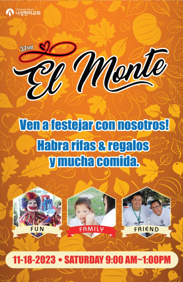 엘에이 동부 지역 엘몬테에 소재한 나성한미교회(홍충수목사)가 지난 1992년 부터 시작한 러브 엘몬테 행사를 올해도 진행한다. 주님께서 맡겨주신 사명과 부르신 소명으로 세상을 향한 증인됨을 전하기 위해 "추수와 감사의 계절"을 맞아 진행해온 러브 엘몬테는 나성한미교회가 EL MONTE 지역의 저소득층 이웃들을 중심으로 그리스도의 몸된 교회로 초청하고 섬기는 행사이다. 올해로 32회 를 맞으며 다가오는 11/18(토) 개최된다.
