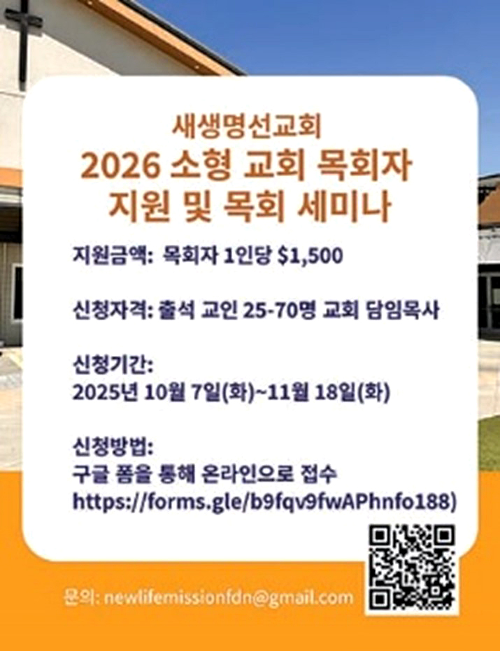 [종교] 새생명선교회, 목회자 위한 재정 후원 신청 받아