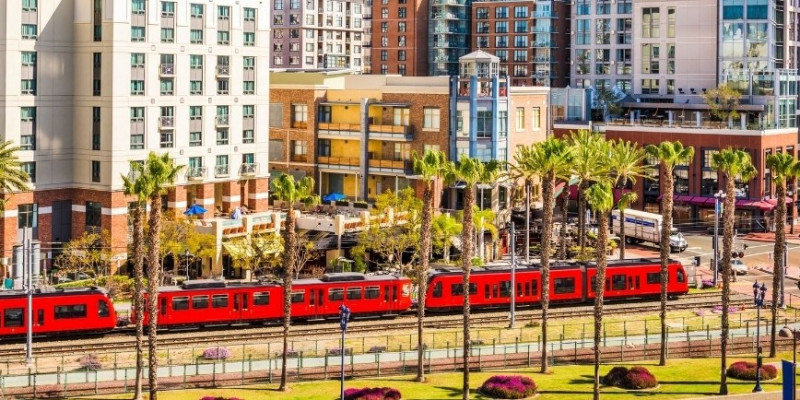 샌디에이고 시내와 그 주변에 머물고 있다면 상징적인 밝은 빨간색 트롤리를 타고 도시 안팎으로 이동할 수 있다. 샌디에이고 트롤리는 산타페 디포와 샌디에이고 컨벤션 센터를 포함한 시내의 주요 위치에서 시내를 가로질러 올드타운, 미션 밸리, 엘 카혼, 산티, 멕시코 국경에 있는 산 이시드로와 같은 다양한 장소로 가는 편리한 서비스를 제공한다. 새로운 UC 샌디에이고 블루 라인 트롤리 연장은 또한 북쪽으로 클레어몬트, UCSD/라호야 지역 및 웨스트필드 UTC 쇼핑 센터까지 서비스를 확장했다. 트롤리 일정 및 정보는 웹에서 SDMTS를 방문하면된다.