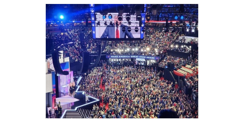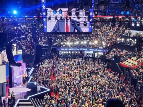 가수 리 그린우드가 무대에서 직접 자신의 노래 '갓 블레스 더 유에스에이'(God Bless the USA·신이여 미국을 축복하소서)를 부르는 가운데 무대에 등장한 트럼프 전 대통령의 대선 후보직 수락 연설은 눈물과 환호, 열광이 뒤섞인 93분 드라마였다.