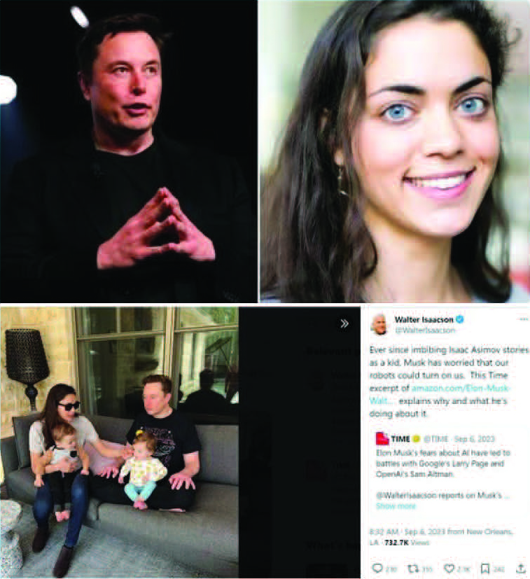 테슬라 최고경영자 일론 머스크와 뉴럴링크 임원 시본 질리스(왼쪽 사진), 작년 9월 \'일론 머스크\' 작가 월터 아이작슨이 올린 머스크와 질리스, 자녀의 사진 [X 게시물 캡처. 재판매 및 DB 금지]