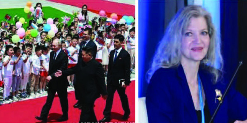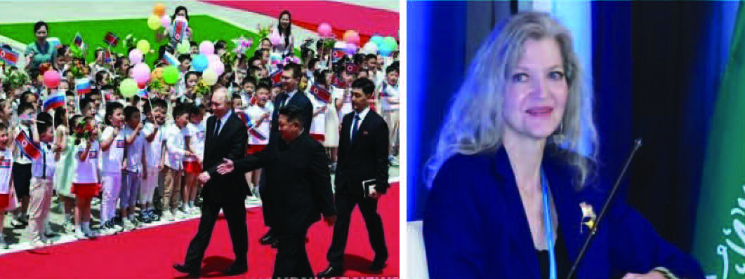평양 김일성 광장 환영식에 참석한 김정은-푸틴(왼쪽 사진), 후커 전 백악관 국가안보회의(NSC) 아시아 담당 선임보좌관