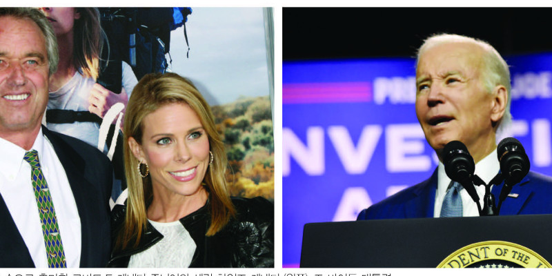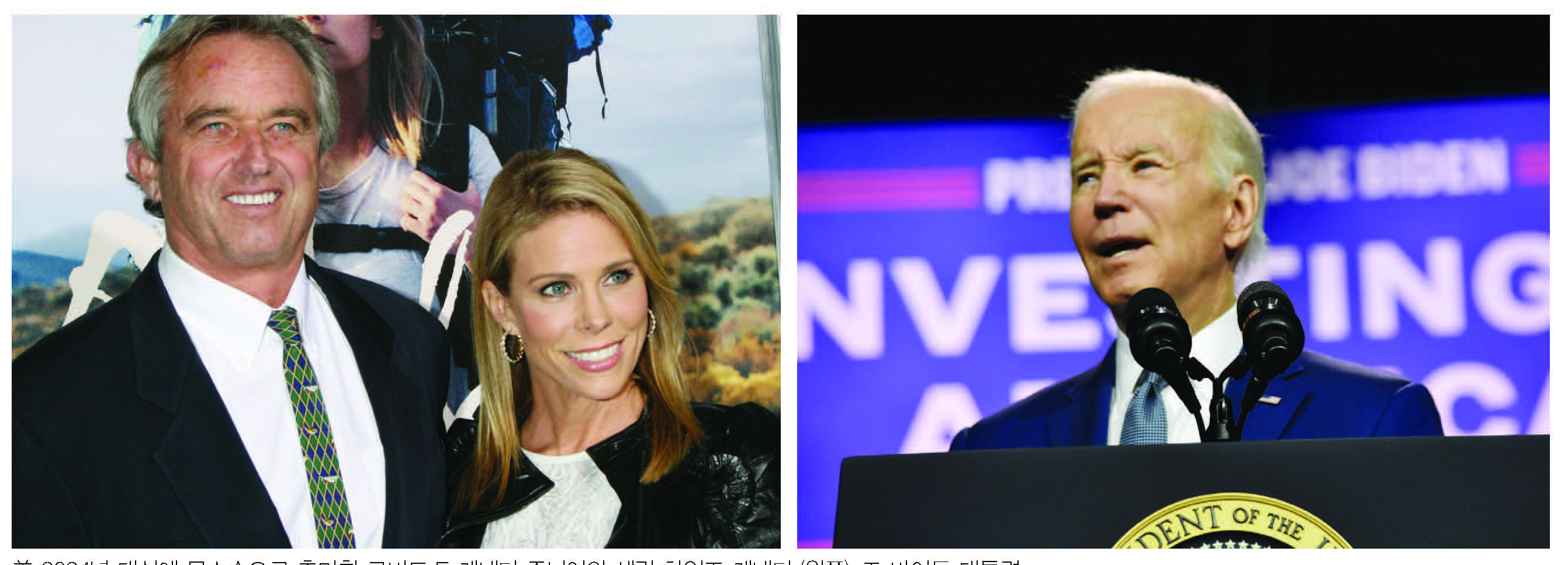 美 2024년 대선에 무소속으로 출마한 로버트 F. 케네디 주니어와 세린 하인즈 케네디 (왼쪽), 조 바이든 대통령