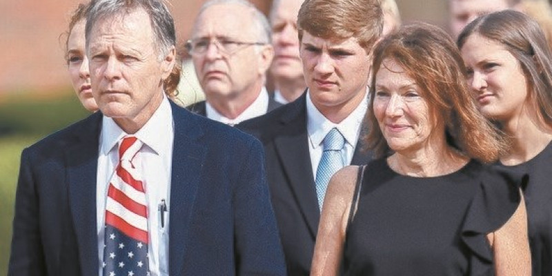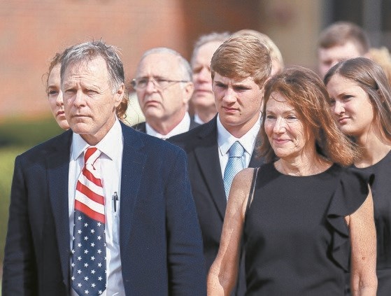 프레드 웜비어(左)와 신디 웜비어(右)가 2017년 6월 22일 미국 오하이오주 와이오밍에서 열린 아들 오토 웜비어의 장례식에 참석하고 있다. (유튜브 영상 캡처)