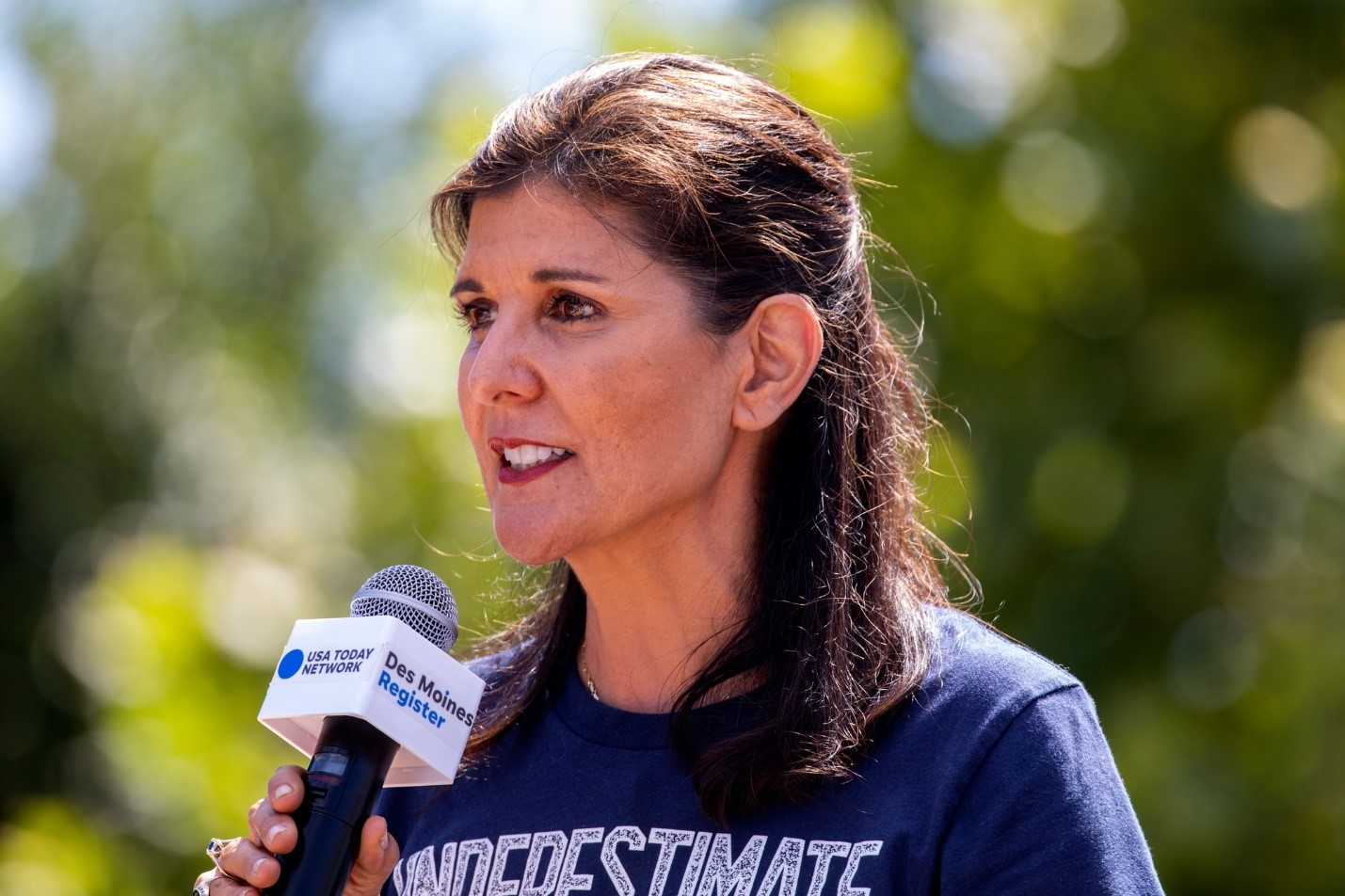 지난 8월12일, 아이오와 주 박람회에서 발언하고 있는 전 유엔대사 공화당 대통령 후보 Nikki Haley