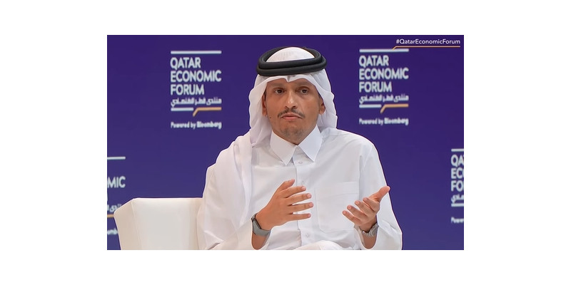 카타르경제포럼서 대담 중인 카타르의 셰이크 무함마드 빈 압둘라흐만 알타니 총리.   [QEF 제공. 재판매 및 DB 금지]