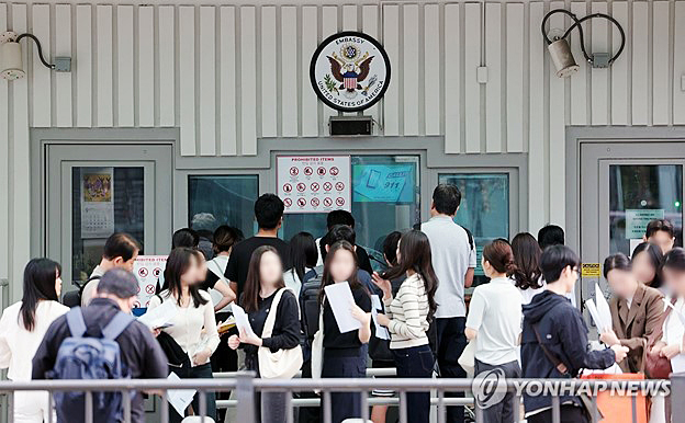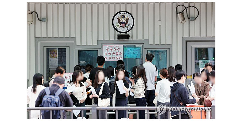 미국대사관 앞에 비자 받으려고 줄 선 시민들. [연합뉴스 자료사진]