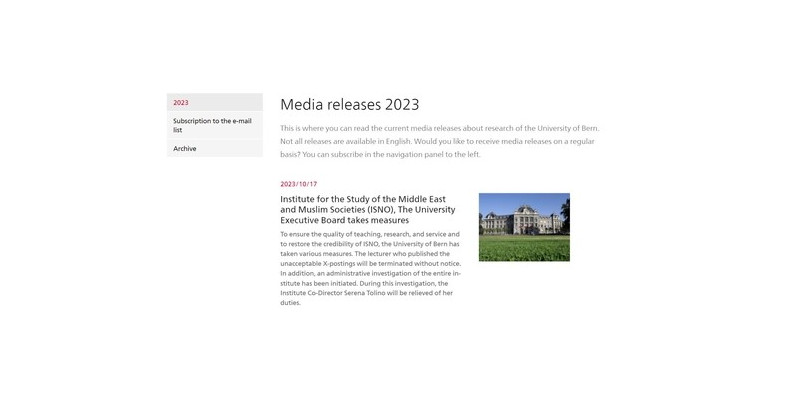 베른대는 보도자료를 통해 이 대학 중동·무슬림 사회연구소 소속 모 강사를 해고했다고 밝혔다.