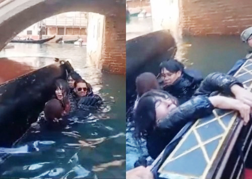 곤돌라가 전복돼 수로에 빠진 관광객들              [현지 엑스(X) 캡처. 재판매 및 DB 금지]