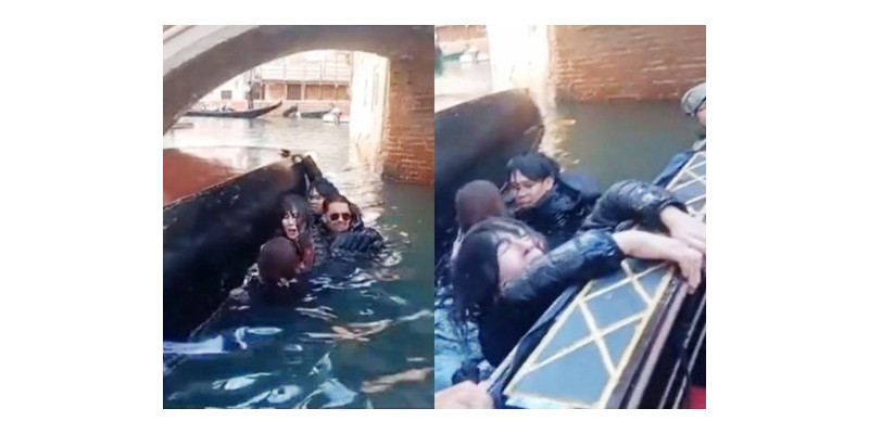 영상에는 물에 빠진 한 여성 관광객이 지나가는 다른 곤돌라에 다급하게 올라타려는 모습이 잡혔다.