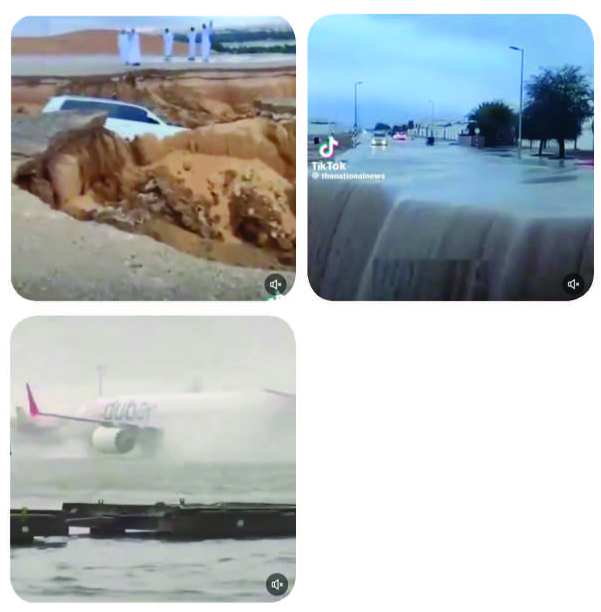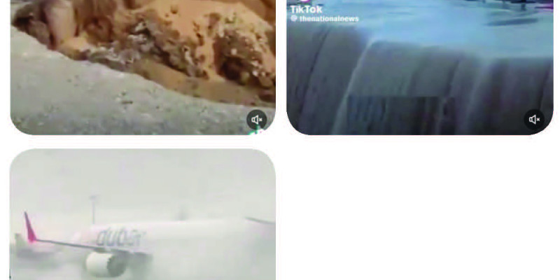 좀처럼 비를 볼 수 없는 사막 기후인 중동 아랍에미리트(UAE) 두바이에서 지난 16일 1년 치 비가 12시간 동안에 쏟아지며 침수 피해가 크게 났다. 두바이 공항과 이웃 샤르자 공항은 활주로가 물에 잠겨 한때 운영이 중단됐으며 수많은 인명 피해와 재산 피해를 기록하고 있는 것으로 알려졌다.