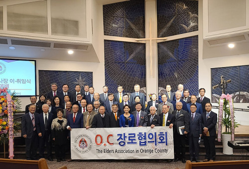 OC장로협의회는 지난 2월12일 주일 오후 4시, 라미라다장로커뮤니티교회에서 9대회장 김용진장로 (새찬양교회)와 이사장 배기호 장로의 취임 감사예배를 드렸다.  약 250여명의 참석자들이 성황을 이룬 가운데 진행된 이번 이취임 예배는 1부를 직전회장 김생수 장로의 사회로 시작하어 부회장 김봉호 장로의 기도와 새찬양교회 여성 중창단의 특별찬양으로 이어졌다.   새찬양교회 담임인 최우진 목사는 마태복음 24장 45절의 말씀을 본문으로  “충성의 의미(마24:45)”라는 말씀을 선표하면서 맡겨진 자들에게 구할 것이 충성임을 재차 강조하고 장로협의회의 리더십으로써 어떻게 섬기며 충성할 것인지에 대해 주문했다.  이어서 장로협의회 회원 모두가 신임회장단을 위한 축가의 순서로 1부가 마무리 된 후 2부 이취임 순서는 부회장인 정창섭 장로의 사회로 직전 회장 김생수 장로의 이임사와 신임회장 김용진 장로의 취임사가 있었다. 이날 이 취임식에는 심상은 목사(OC교회협 회장), 이영선 목사(미주복음방송 사장), 영김(연방하원의원)의 격려와 축사가  미셀박 스틸(연방하원의원) 축사를 전했다.   올해로 9대 회장이 선임된 OC장로협의회는 2014년, 은혜한인교회와 OC 제일장로교회, 라팔마 연합감리교회 등 OC 대형 한인교회 장로 20여명이 모인 가운데 바람직한 평신도의 모습을 정립하고 목회자들을 도우며 지역선교에 힘을 모으자는 활동목적으로 초대회장에 김종대 장로를 세우며 시작됐다.  OC 장로협의회는 OC 지역에 있는 교회를 섬기는 장로들이나 주거지가 OC 지역인 기독교 교회 장로직분 자들은 누구나 참석할 수 있다. 장로교나 감리교, 성결교, 침례교 등 교단을 초월해 가입이 가능하다.